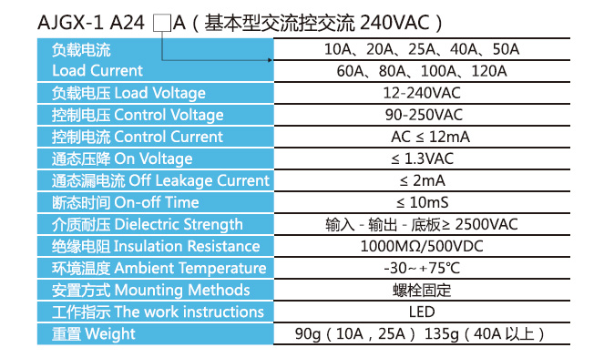 本公司生产的AJGX型SSR是采用国外先进技术和器件制造的一种开关性能优良的新型无触点电子开关器件。其输入端仅要求很小的控制电流,能与TTL、HTL、CMOS等集成电路较好地兼容;而输出回路则采用可控桂或大功率晶体管接通和断开负载电流。输入与输出之间采用光电耦合,通断没有可动接触部件,因此具有工作可靠、开关速度快、无噪音、寿命长、体积小、无火花、耐蚀防爆抗振等特点。目前已广泛应用于计算机外围接口设备、电炉加热恒温设备;数控机械' 遥控系统、工业自动化装置;信号灯、交通灯、照明舞台灯光控制设备;仪器仪表、 医疗器械、复印机、彩扩机' 橡塑机械,自动洗衣机;另外在化工、煤矿需防爆、防湿、防腐蚀场合中都有大量使用,已成为继电器家族(EMR) 的理想更新换代产品。