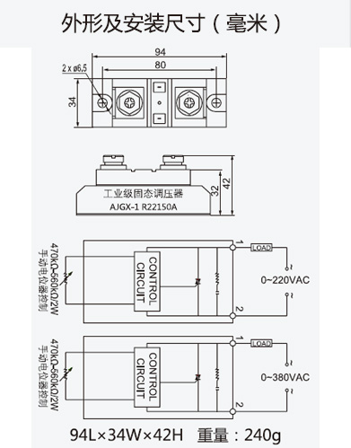 本公司生产的AJGX型SSR是采用国外先进技术和器件制造的一种开关性能优良的新型无触点电子开关器件。其输入端仅要求很小的控制电流,能与TTL、HTL、CMOS等集成电路较好地兼容;而输出回路则采用可控桂或大功率晶体管接通和断开负载电流。输入与输出之间采用光电耦合,通断没有可动接触部件,因此具有工作可靠、开关速度快、无噪音、寿命长、体积小、无火花、耐蚀防爆抗振等特点。目前已广泛应用于计算机外围接口设备、电炉加热恒温设备;数控机械、遥控系统、工业自动化装置;信号灯、交通灯、照明舞台灯光控制设备;仪器仪表、 医疗器械、 复印机、彩扩机、橡塑机械,自动洗衣机;另外在化工、煤矿需防爆、防湿、防腐蚀场合中都有大量使用,已成为继电器家族(EMR) 的理想更新换代产品。