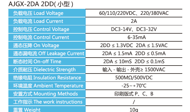 本公司生产的AJGX型SSR是采用国外先进技术和器件制造的一种开关性能优良的新型无触点电子开关器件。其输入端仅要求很小的控制 电流,能与TTL、HTL、CMOS等集成电路较好地兼容;而输出回路则采用可控桂或大功率晶体管接通和断开负载电流。输入与输出之间采用 光电耦合,通断没有可动接触部件,因此具有工作可靠、开关速度快、无噪音、寿命长、体积小、无火花、耐蚀防爆抗振等特点。目前已广泛应用于计算机外围接口设备、电炉加热恒温设备;数控机械、遥控系统、工业自动化装置;信号灯、交通灯、照明舞台灯光控制设备;仪器仪表、 医疗器械、复印机、彩扩机、橡塑机械,自动洗衣机;另外在化工、煤矿需防爆、防湿、 防腐蚀场合中都有大量使用,已成为继电器家族(EMR) 的理想更新换代产品。
