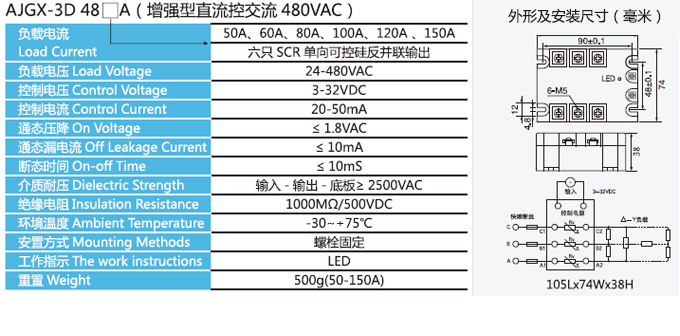 本公司生产的AJGX型SSR是采用国外先进技术和器件制造的一种开关性能优良的新型无触点电子开关器件。其输入端仅要求很小的控制电流,能与TTL、HTL、CMOS等集成电路较好地兼容;而输出回路则采用可控桂或大功率晶体管接通和断开负载电流。输入与输出之间采用光电耦合,通断没有可动接触部件,因此具有工作可靠、开关速度快、无噪音、寿命长、体积小、无火花、耐蚀防爆抗振等特点。目前已广泛应用于计算机外围接口设备、电炉加热恒温设备;数控机械、遥控系统、工业自动化装置;信号灯、交通灯、 照明舞台灯光控制设备;仪器仪表、 医疗器械、复印机、彩扩机' 橡塑机械,自动洗衣机;另外在化工、 煤矿需防爆、防湿、防腐蚀场合中都有大量使用,已成为继电器家族(EMR) 的理想更新换代产品。