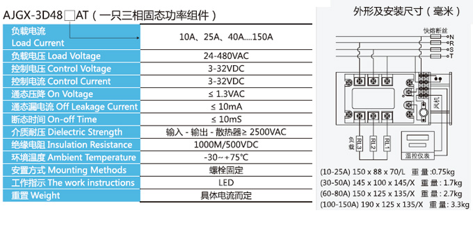 本公司生产的AJGX型SSR是采用国外先进技术和器件制造的一种开关性能优良的新型无触点电子开关器件。其输入端仅要求很小的控制电流,能与TTL、HTL、CMOS等集成电路较好地兼容;而输出回路则采用可控桂或大功率晶体管接通和断开负载电流。输入与输出之间采用光电耦合,通断没有可动接触部件,因此具有工作可靠、开关速度快、无噪音、寿命长、体积小、无火花、耐蚀防爆抗振等特点。目前已广泛应用于计算机外围接口设备、电炉加热恒温设备;数控机械、遥控系统、工业自动化装置;信号灯、交通灯、照明舞台灯光控制设备;仪器仪表、 医疗器械、复印机、彩扩机' 橡塑机械,自动洗衣机;另外在化工、煤矿需防爆、防湿、 防腐蚀场合中都有大量使用,已成为继电器家族(EMR) 的理想更新换代产品。
