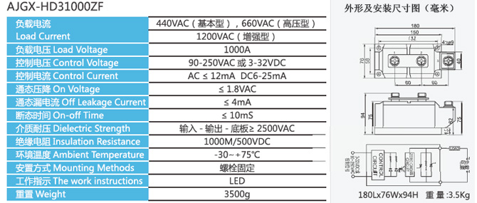 AJGX-HD31000ZF 工业级固态继电器