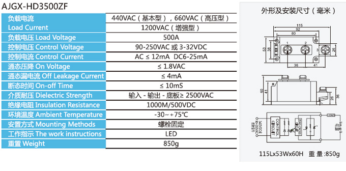 本公司生产的AJGX型SSR是采用国外先进技术和器件制造的一种开关性能优良的新型无触点电子开关器件。其输入端仅要求很小的控制电流,能与TTL、HTL、CMOS等集成电路较好地兼容;而输出回路则采用可控桂或大功率晶体管接通和断开负载电流。输入与输出之间采用光电耦合,通断没有可动接触部件,因此具有工作可靠、开关速度快、无噪音、寿命长、体积小、无火花、耐蚀防爆抗振等特点。目前已广泛应用于计算机外围接口设备、电炉加热恒温设备;数控机械、遥控系统、工业自动化装置;信号灯、交通灯、 照明舞台灯光控制设备;仪器仪表、 医疗器械、复印机、彩扩机、 橡塑机械,自动洗衣机;另外在化工、煤矿需防爆、防湿、防腐蚀场合中都有大量使用,已成为继电器家族(EMR) 的理想更新换代产品。